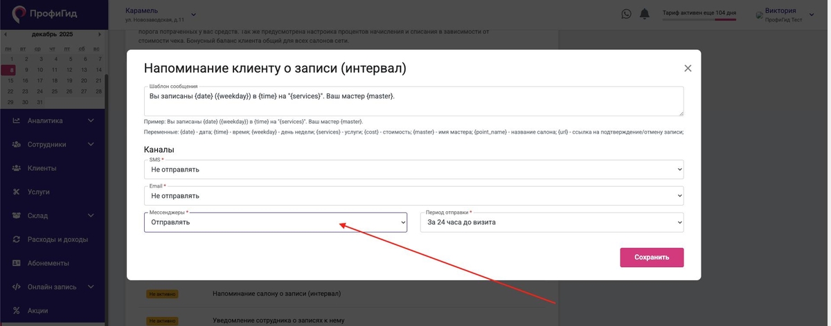 Вы можете настроить отправку в Мессенджер уведомлений своим клиентам. Для этого перейдите в раздел Настройки -> Настройки уведомлений.