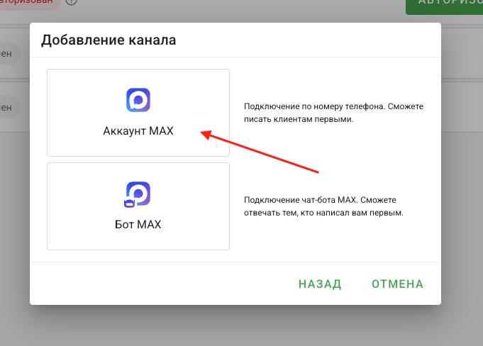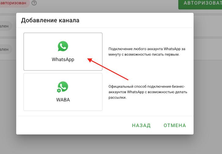 - Для WhatsApp - отсканируйте предложенный QR код приложением WhatsApp с мобильного телефона салона (На телефоне: WhatsApp -> Настройки -> Связанные устройства).